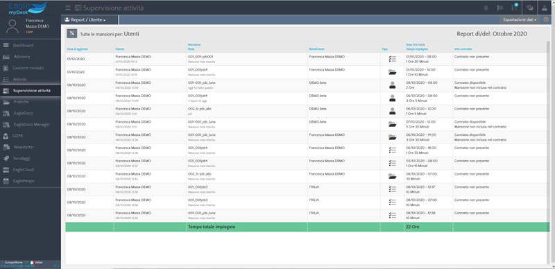 eMyDesk Audit&Repo consente ai Manager di monitorare e gestire tutte le attività svolte dagli Utenti per una corretta analisi per la determinazione della redditività generate per singolo Cliente.